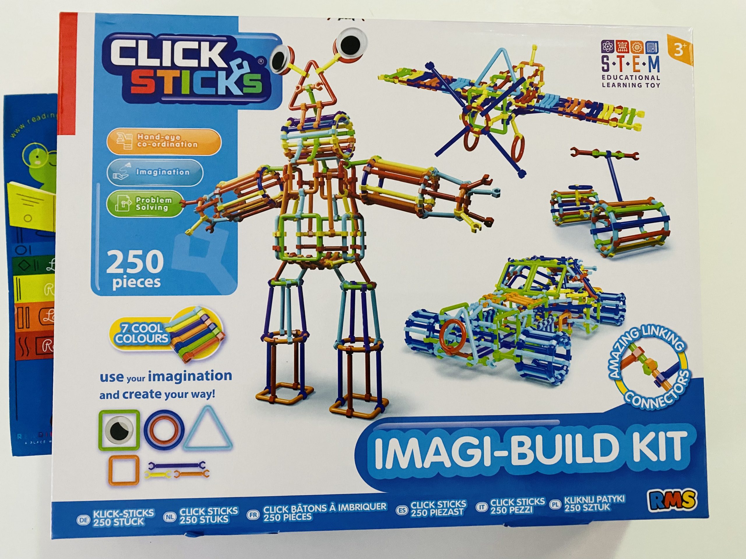 Acest set de construcție Click Sticks Imagi-Build este ideal pentru dezvoltarea coordonării mână-ochi, a imaginației dar şi abilităților de rezolvare a problemelor.