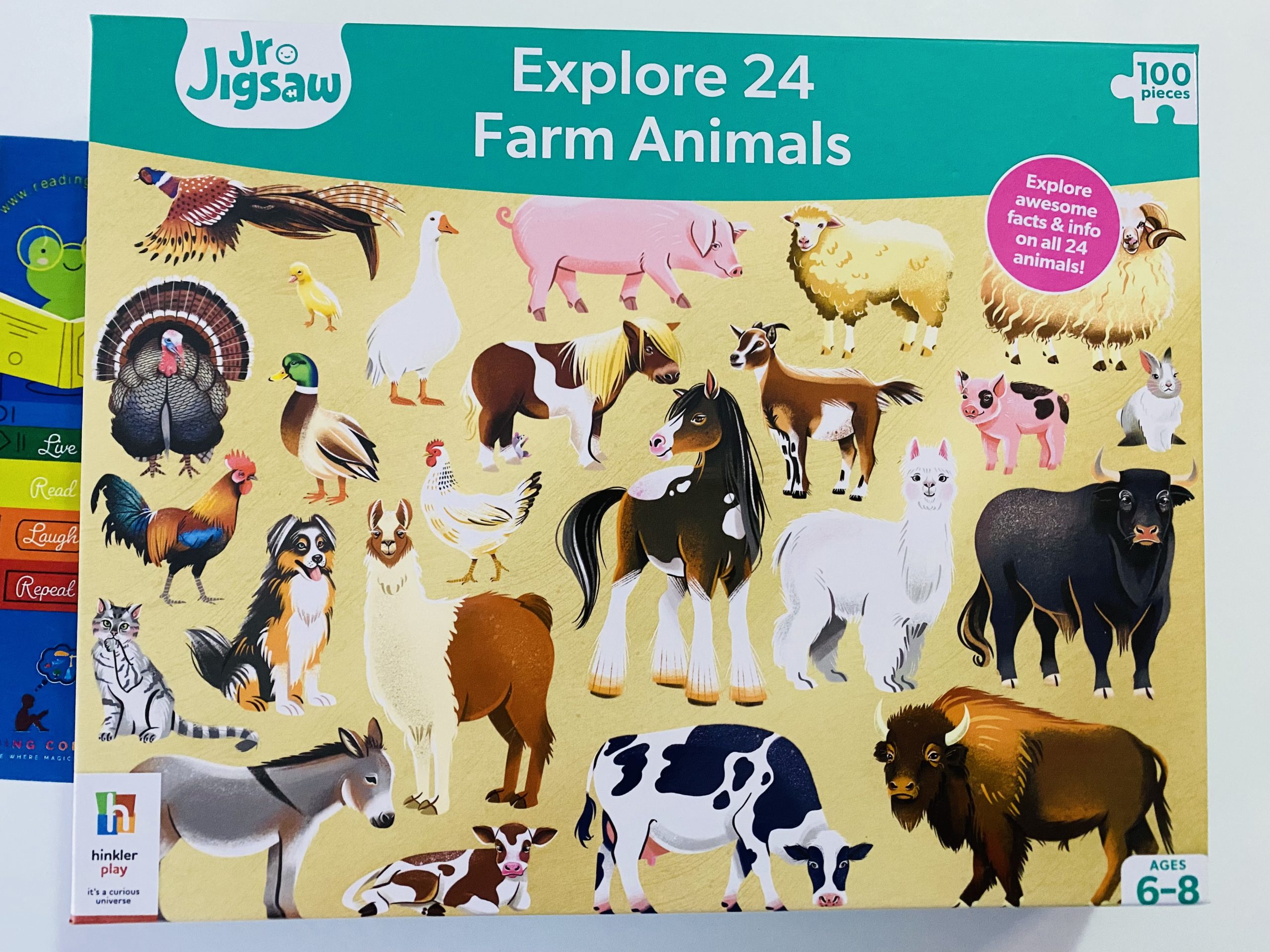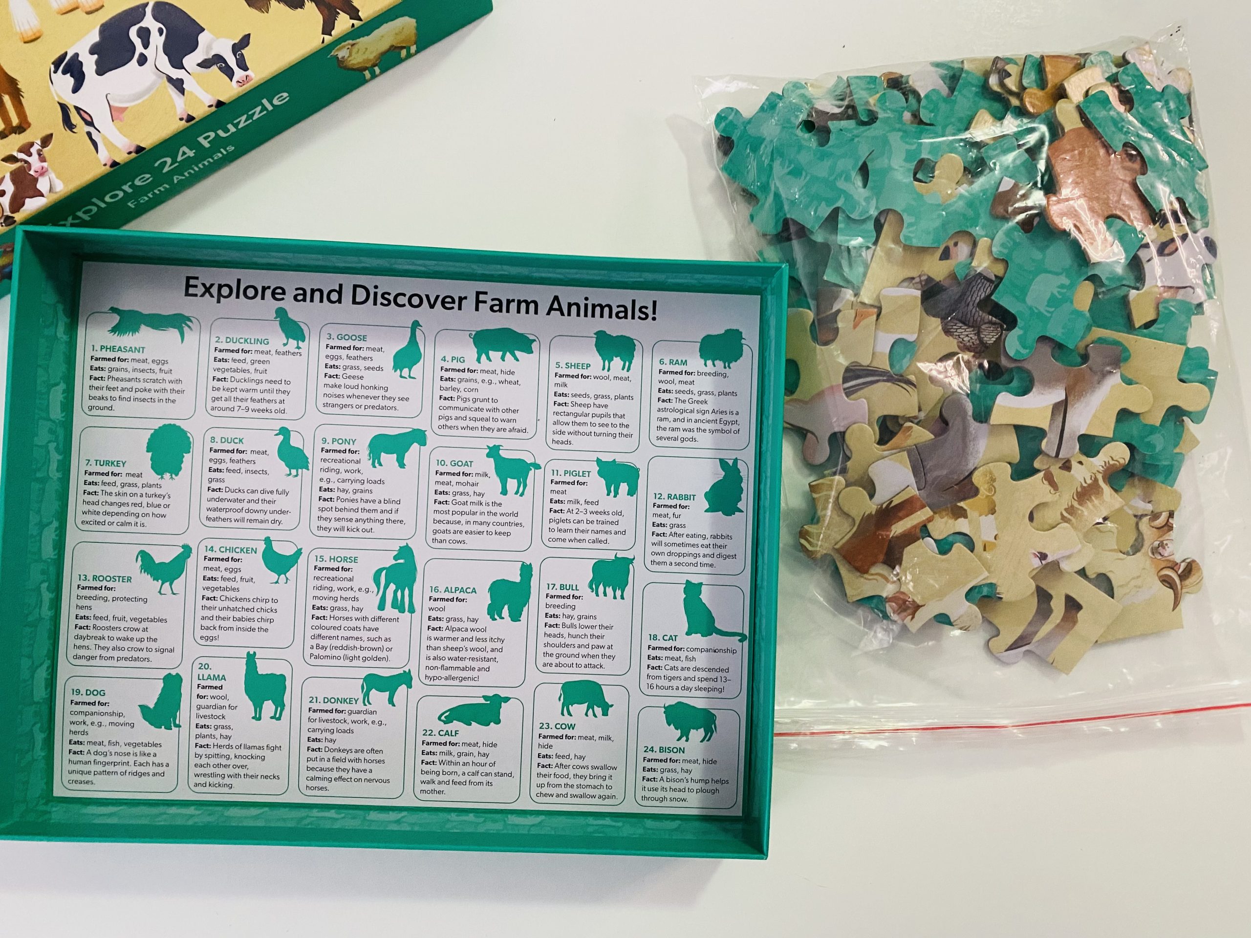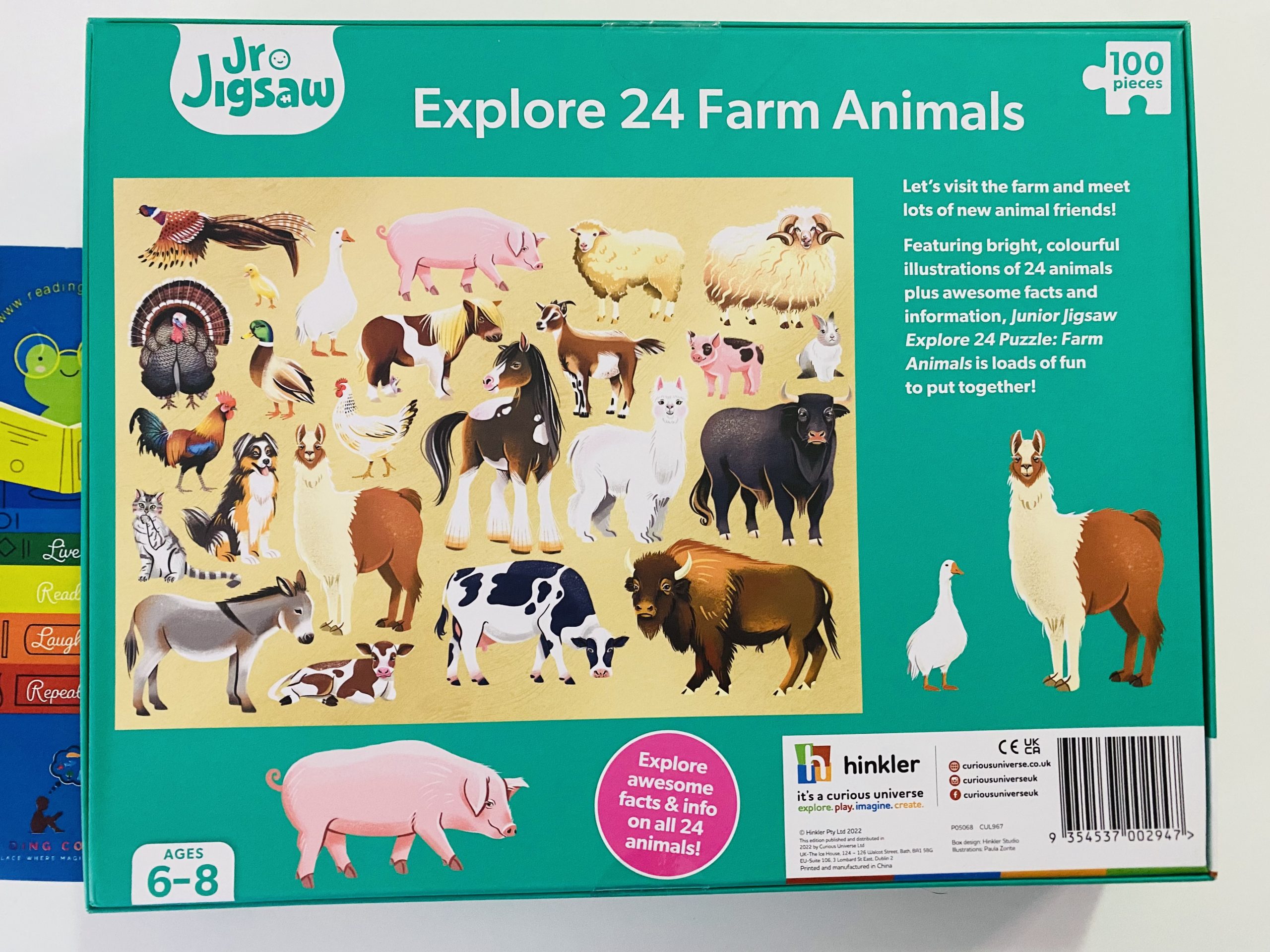 Cu ilustrații colorate ale celor 24 de animale de la fermă, plus informații și curiozități uimitoare, Junior Jigsaw Explore 24 Farm Animals – Puzzle de 100 de piese –este o activitate relaxantă atât pentru copii şi părinți.